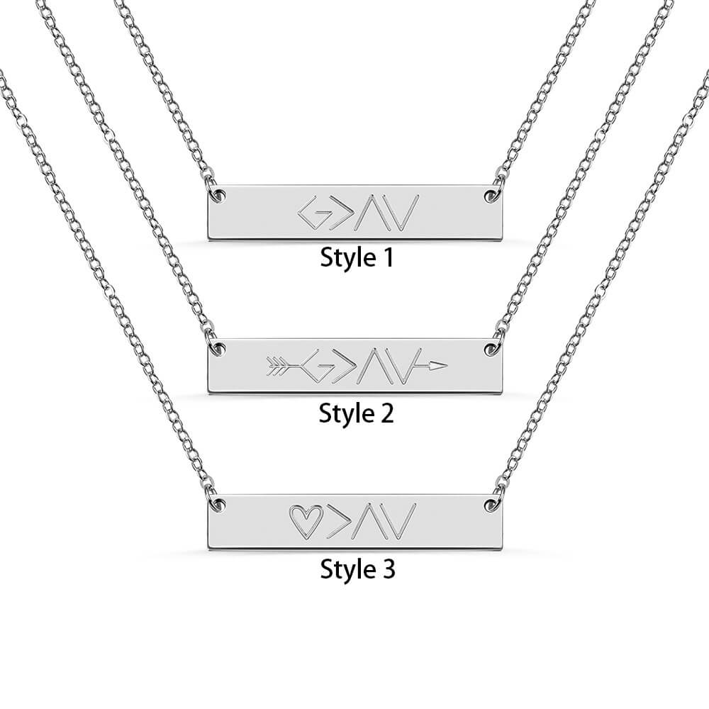 If you believe in God, then you must have heard of the saying "God is greater than the highs and lows", our necklace transfer this sentence into a series of symbols, engraving your belief in God on the necklace, close to your heart! God is in our heart, and bestow us strength when confronting with hard times! And we have free engraving on the back of the bar, you can engraving your belief or the motto you love, make the bar necklace one-of-a-kind. It's the perfect necklace for those who believe in God!