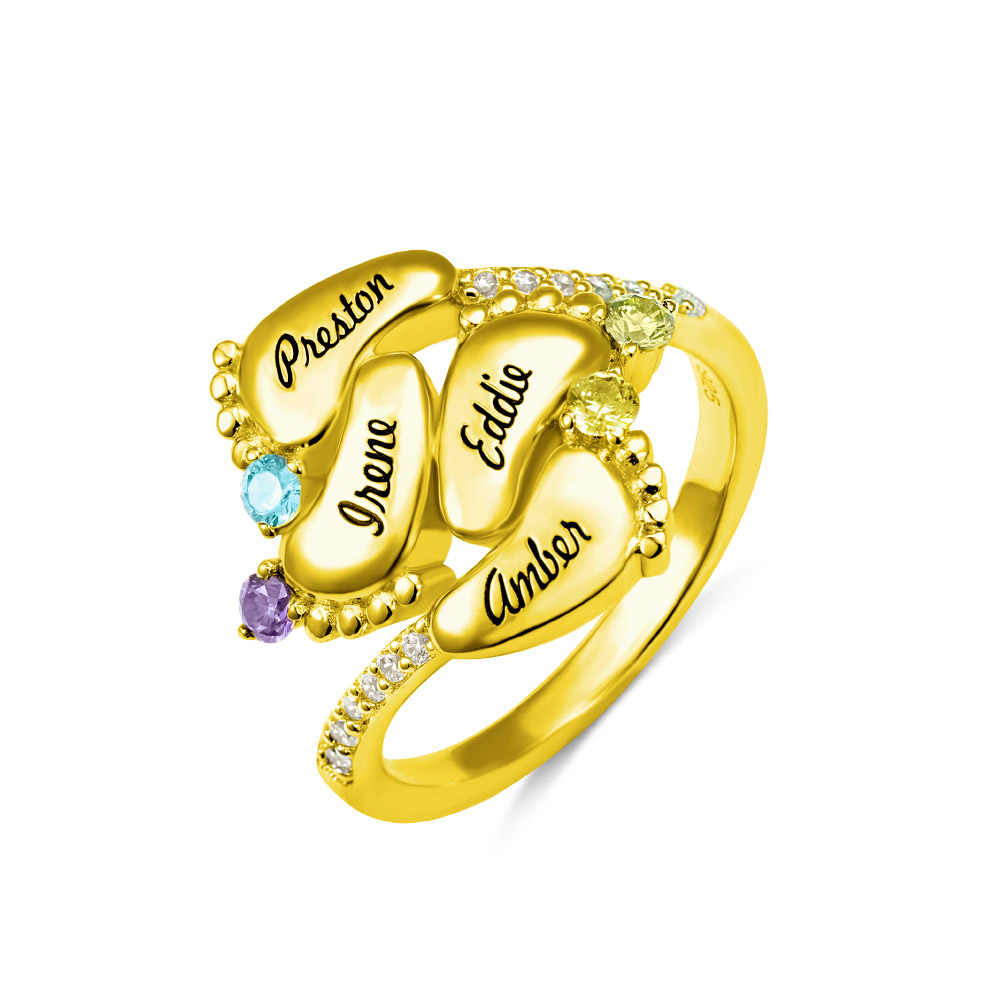 For the Mothers who love so dearly – now you get to show off your baby's name with this Engraved Baby Feet Birthstones Ring.